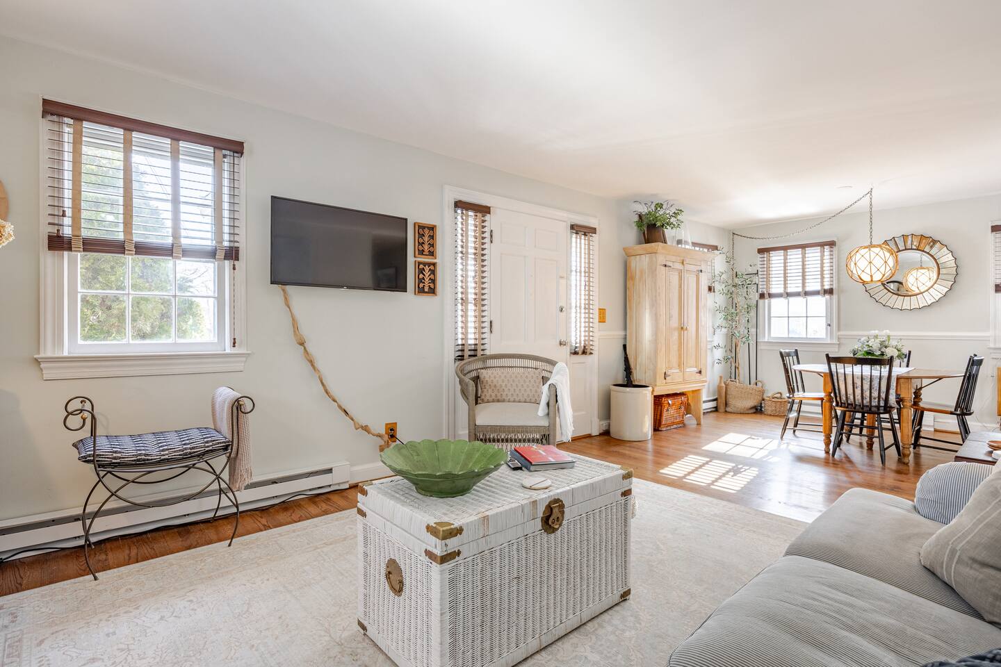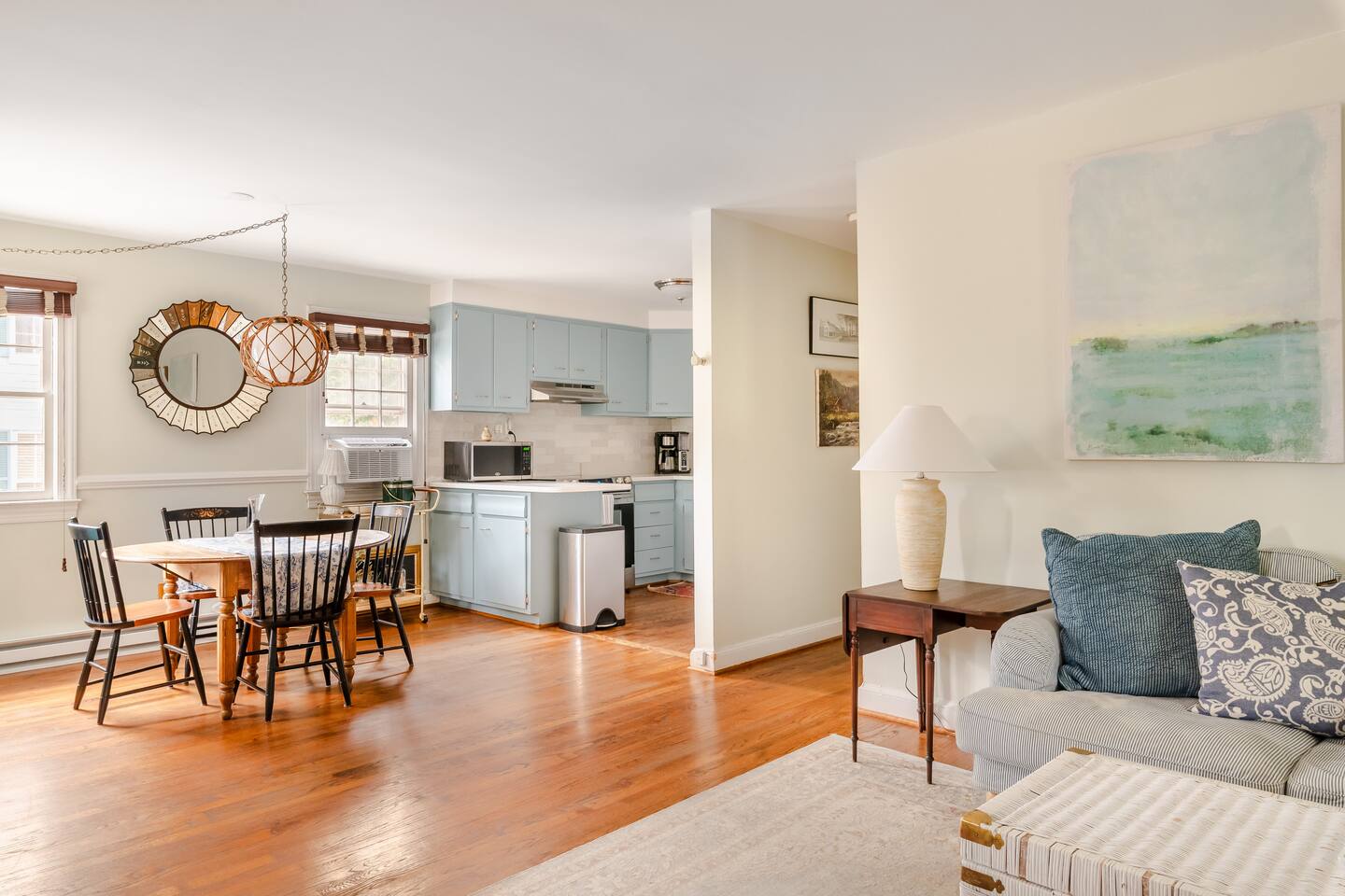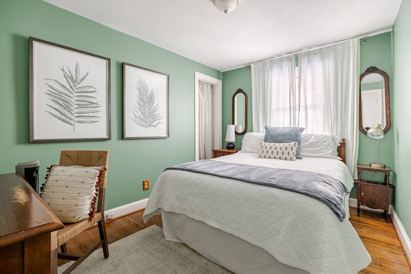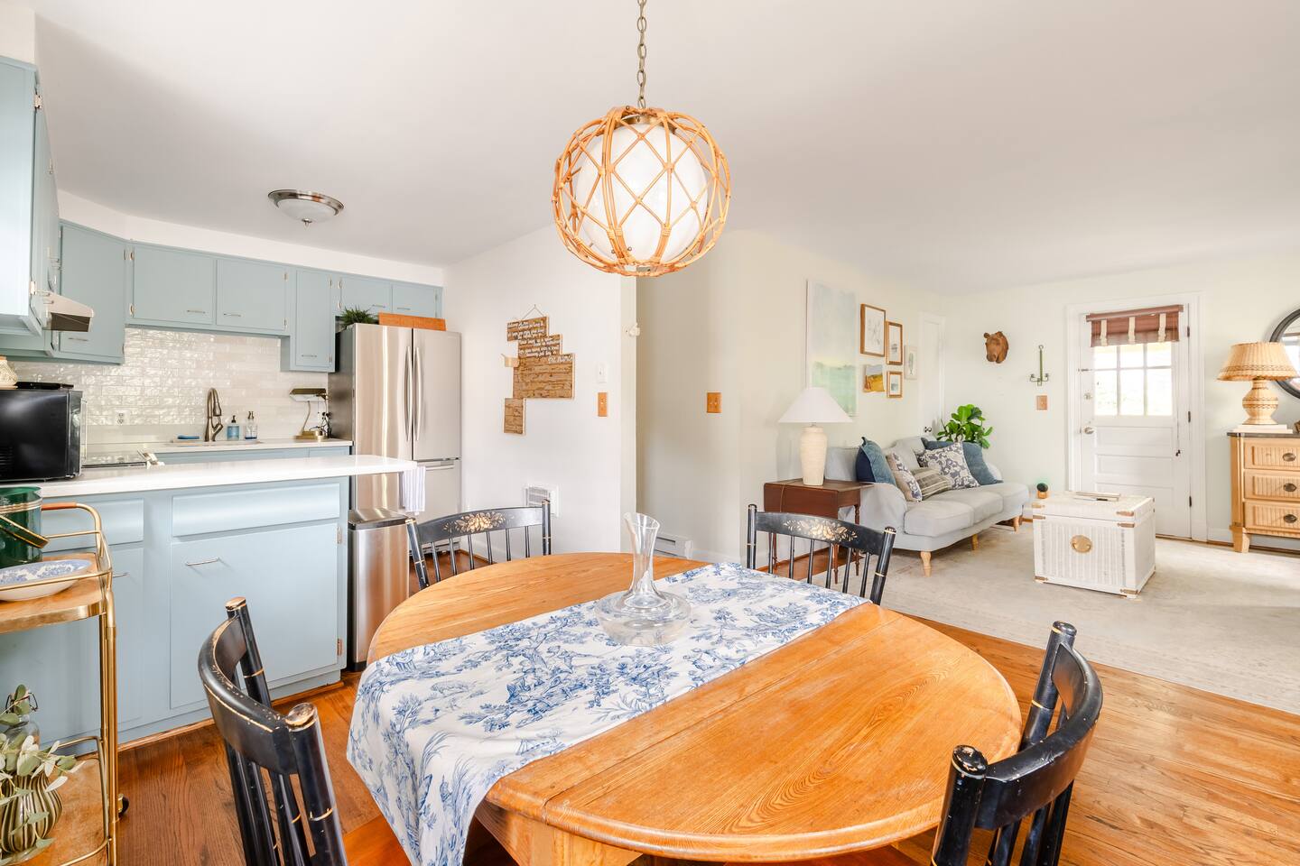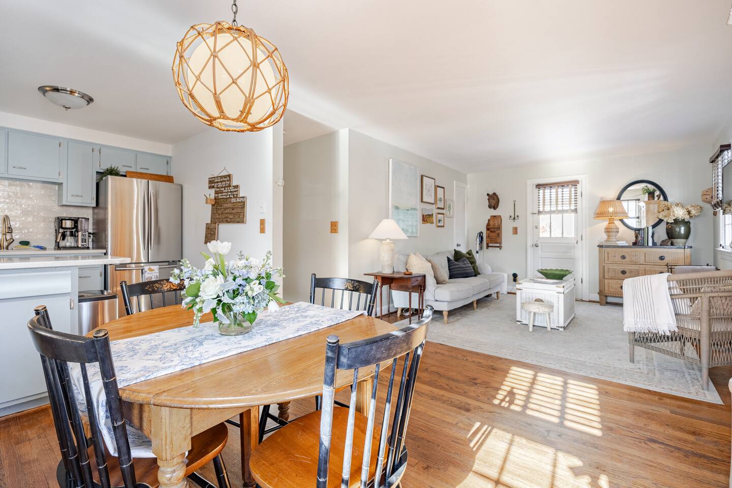Your Property Step into a cozy, character-filled retreat featuring two inviting bedrooms—one in a serene green, the other in calming blue—each with plush bedding for a restful night’s sleep. The full bathroom is stocked with essentials, and the in-home laundry room makes extended stays easy. The living room, dining area, and kitchen blend antique touches with modern convenience, including new appliances to make cooking a pleasure.