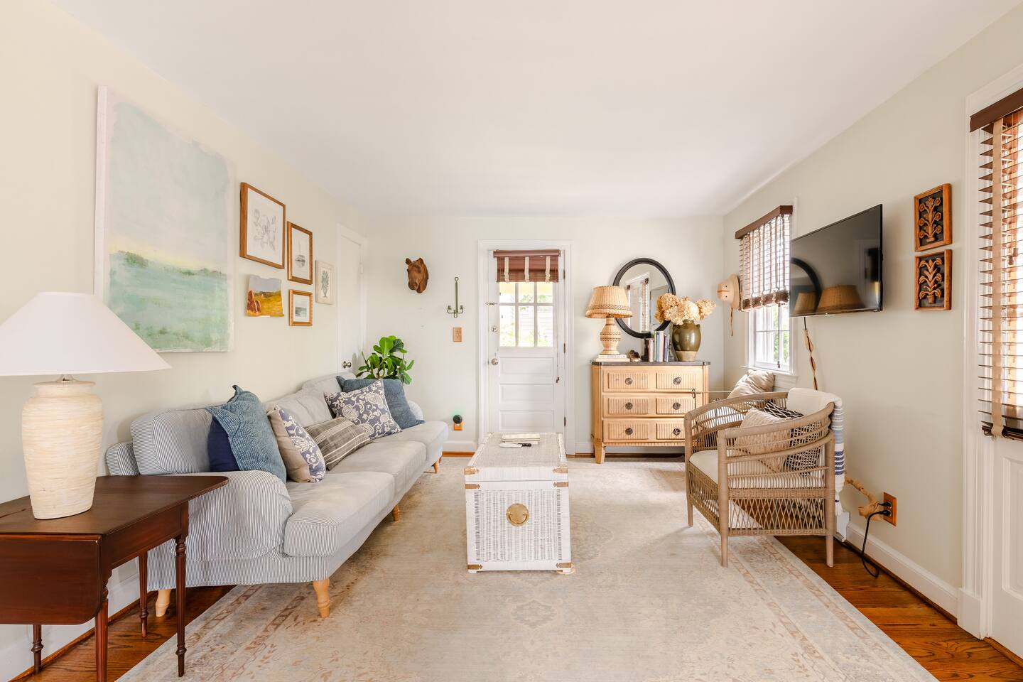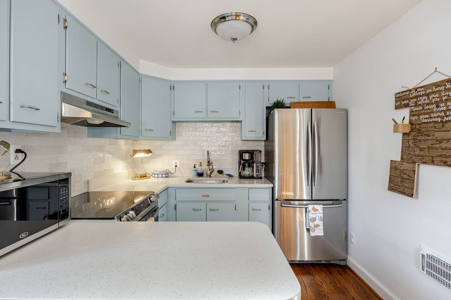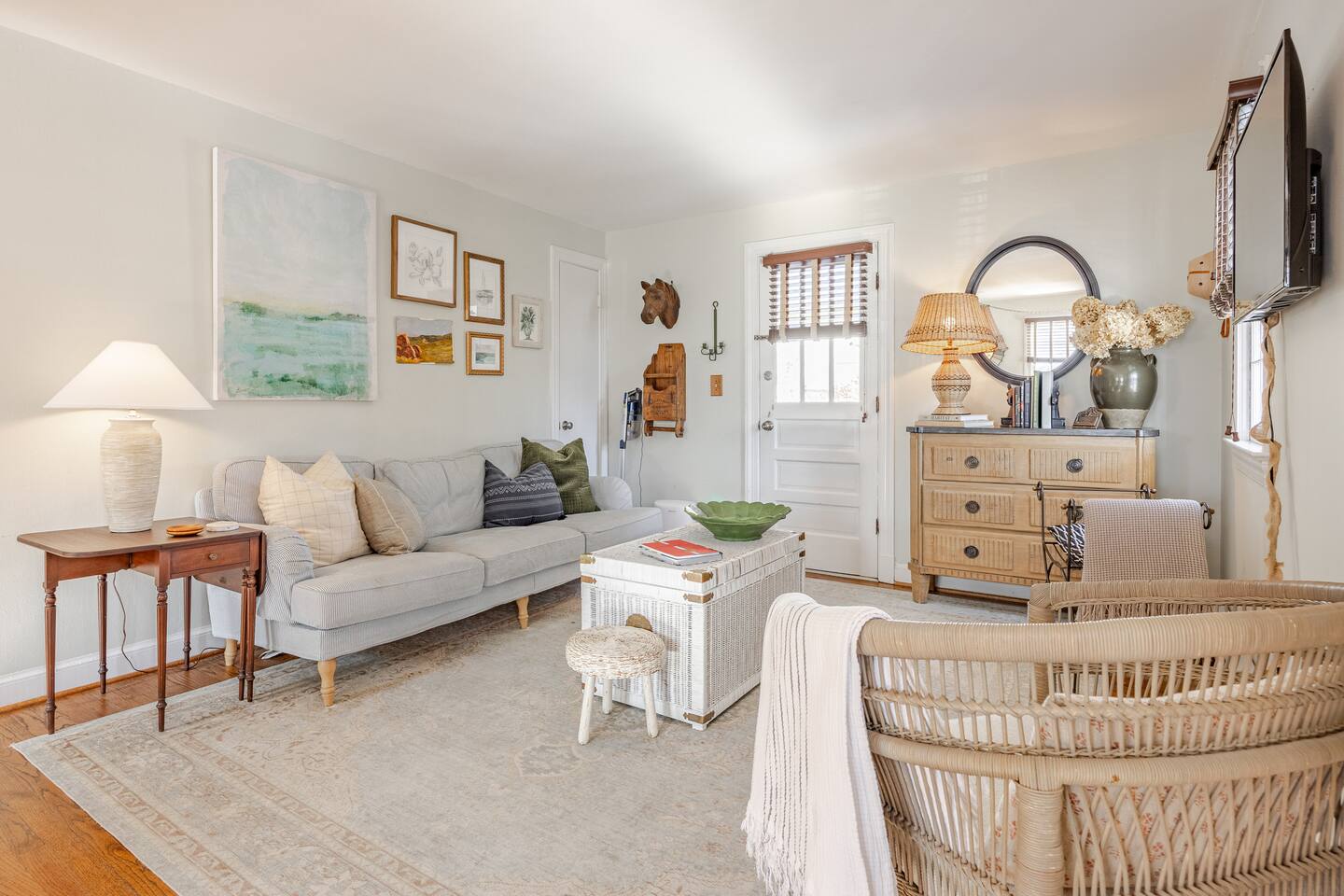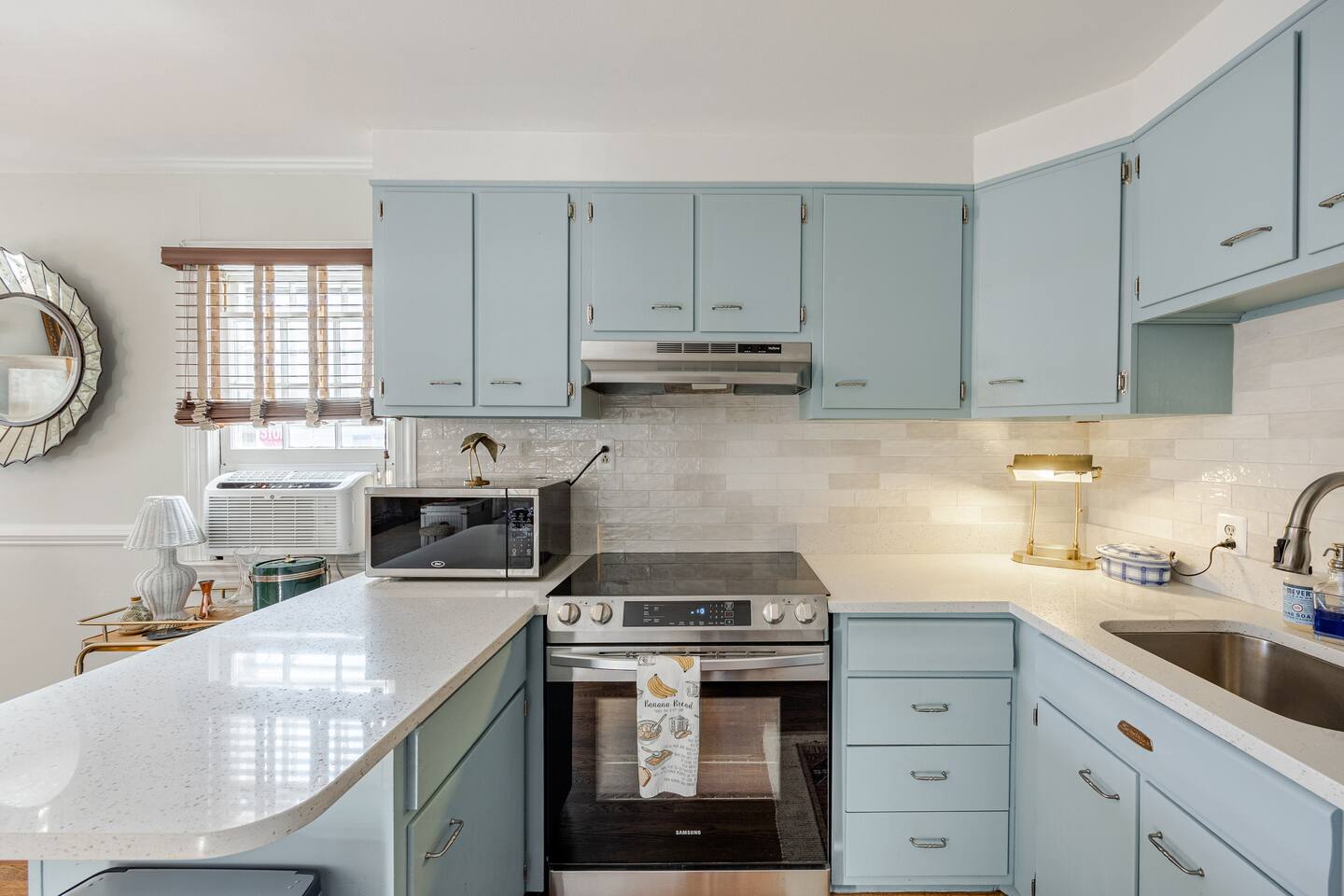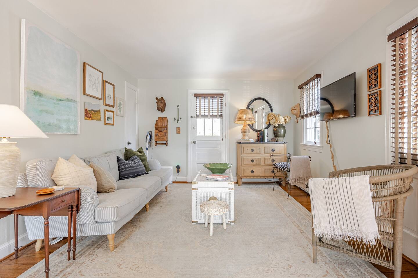 Your Property Step into a cozy, character-filled retreat featuring two inviting bedrooms—one in a serene green, the other in calming blue—each with plush bedding for a restful night’s sleep. The full bathroom is stocked with essentials, and the in-home laundry room makes extended stays easy. The living room, dining area, and kitchen blend antique touches with modern convenience, including new appliances to make cooking a pleasure.